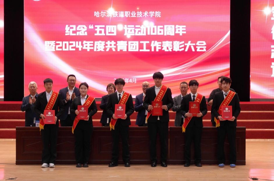 会上,副院长王璐、副院长马绍南、副院长王天一分别宣读《哈铁学院2024年度“五四”评选表彰个人和集体的决定》,表彰了优秀共青团员、优秀共青团干部、优秀学生会干部、社会实践先进个人、优秀志愿者个人、校园文化先进个人、青年岗位能手等625名个人,五四红旗团支部、社会实践先进集体、志愿服务优秀集体、青年文明号等26个集体 授予程玉娟等7名教师“哈铁学院青年岗位能手”称号。机电学院王学生王言毓、教师代表李月娇、铁建学院团总支书记李佳富分别代表受表彰的先进个人和集体发言。
